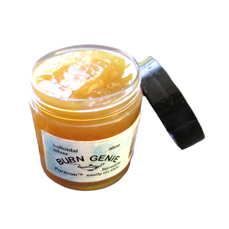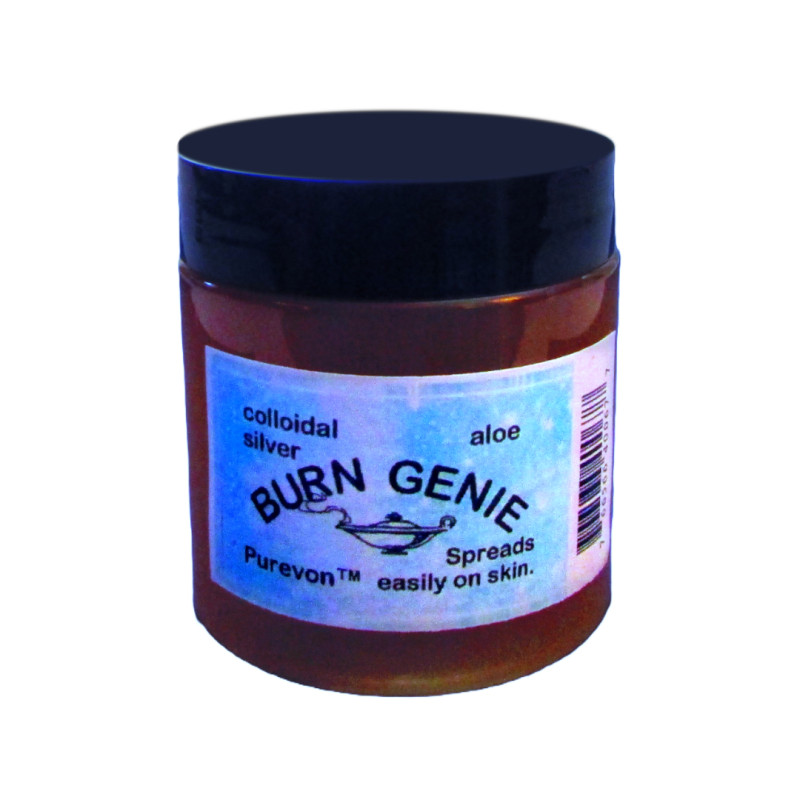 Burn Genie Silver Aloe Gel is a premium topical liniment formulated with pure soluble silver (20 ppm), triple-strength organic aloe juice concentrate, and a sophisticated blend of orange, lemongrass, and sesame essential oils. This sophisticated formulation is expertly suspended in a smooth carbomer gel base that adheres comfortably to skin and provides extended contact time with your skin’s surface.